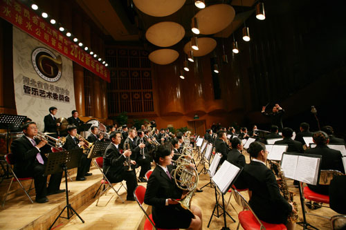 河北省藝術(shù)中心音樂廳是河北省最高藝術(shù)殿堂,這次在這里演出的管樂團(tuán),卻是一個(gè)只有400多名員工的石家莊高新技術(shù)產(chǎn)業(yè)開發(fā)區(qū)供水排水公司管樂團(tuán),這成為這場音樂會(huì)的最亮看點(diǎn)。音樂會(huì)在一曲悠揚(yáng)的《萬歲,偉大的祖國》管樂曲中拉開序幕,整場音樂會(huì)共演奏了包括《杜鵑圓舞曲》、《北京喜訊到邊寨》、《威廉退爾序曲》等14首中外著名的管樂曲,中場還穿插了男女聲獨(dú)唱。其演奏和演唱水平都是超企業(yè)規(guī)模超觀眾想象的,使得音樂會(huì)更具魅力和特色。