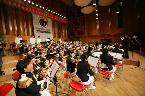 12月9日下午2時(shí)30分,一場由一個(gè)400多名員工的企業(yè)管樂團(tuán)舉辦的“慶祝河北省音協(xié)管樂藝術(shù)委員會(huì)成立兩周年暨石家莊高新區(qū)供水排水公司管樂團(tuán)2012年新年音樂會(huì)”在河北省藝術(shù)中心音樂廳舉辦,原中國人民解放軍軍樂團(tuán)團(tuán)長、國家一級(jí)指揮、中國音樂家協(xié)會(huì)理事、中國指揮家協(xié)會(huì)理事、全國政協(xié)委員、中國音協(xié)管樂學(xué)會(huì)主席于海親臨藝術(shù)指導(dǎo)。