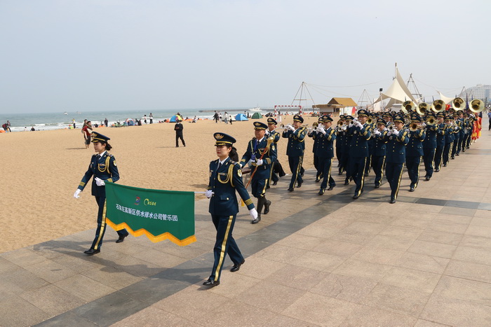 活動(dòng)期間,組委會(huì)特別組織優(yōu)秀團(tuán)隊(duì)在萬(wàn)平口海濱公園開(kāi)展巡游表演和惠民演出。公司管樂(lè)團(tuán)沿海岸線行進(jìn),演奏了《我和我的祖國(guó)》《咱當(dāng)兵的人》《山岳暢想》《奉獻(xiàn)頌》等樂(lè)曲,在蔚藍(lán)大海與金色沙灘間,躍動(dòng)的音符與翻飛的旗幟構(gòu)成流動(dòng)的藝術(shù)畫(huà)卷,吸引眾多游客駐足觀賞。