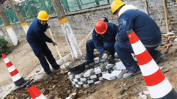“砂漿要填飽滿,施工質(zhì)量必須要保證!”幾個人細心地壘磚、抹灰,不時檢查一番砌筑的效果。經(jīng)過一番忙碌,11時前,處理完成,比預(yù)定時間足足提前了半天。大家高興地說:“管線可以早些恢復(fù)運行啦!”