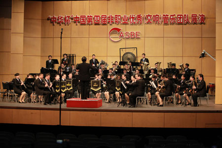 作為2010年上海世博會開幕式期間的重要活動之一,由上海之春國際音樂節(jié)組委會、上海世博會事務(wù)協(xié)調(diào)局等10個單位聯(lián)合主辦的世博號角——2010上海之春國際音樂節(jié)管樂藝術(shù)節(jié)暨“中華杯”中國第四屆非職業(yè)優(yōu)秀(交響)管樂團(tuán)隊(duì)展演于4月29日至5月2日在上海舉行。展演組委會名譽(yù)主任、中國音協(xié)分黨組書記、駐會副主席徐沛東等參加了藝術(shù)節(jié)開幕式。展演組委會主任——中國音協(xié)管樂學(xué)會主席、中國人民解放軍軍樂團(tuán)于海少將等管樂名家一一為展演團(tuán)體當(dāng)場作出點(diǎn)評,并在活動閉幕式上為獲得獎項(xiàng)的樂團(tuán)頒發(fā)了獎杯,同時感謝大家用管樂奏出了世博盛會的歡歌,并衷心祝愿各支樂團(tuán)不斷提高水平,推動我國非職業(yè)音樂團(tuán)體的進(jìn)步和發(fā)展。
